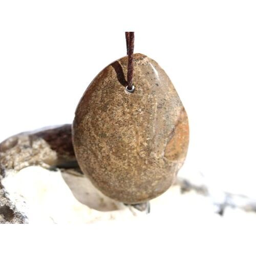 Ammonit in Matrix - Schmuckstein Cabochon / Scheibenstein gebohrt - ca. 3,3 cm x 2,6 cm x 0,6 cm