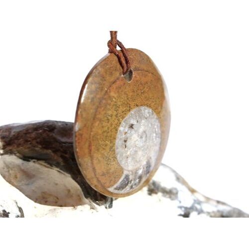 XL Ammonit (Ammolith / Korite / Calcentin) in Matrix - Schmuckstein Cabochon / Scheibenstein gebohrt: