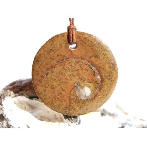 - Besonderheit: XL-große, geometrisch-runde und somit edel-zeitlose und flache, geschliffene Freeform mit leichtem Cabochon-Schliff auf der Vorderseite, flach geschliffene Rückseite mit großer Auflagefläche - beidseitig tragbar - große Frontbohrung! Eingebettet in Matrixgestein ist die Ammonite sichtbar! Wunderschöne, warme Farbgebung! Zur Steinauflage bzw. als Auflagestein geeignet!