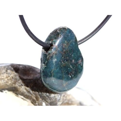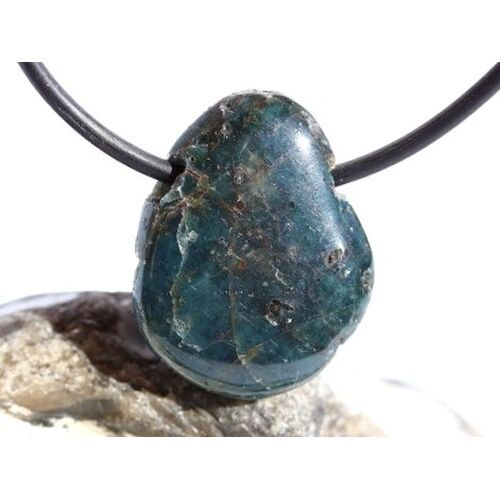Apatit blau Natur - Trommelstein / Scheibenstein gebohrt: