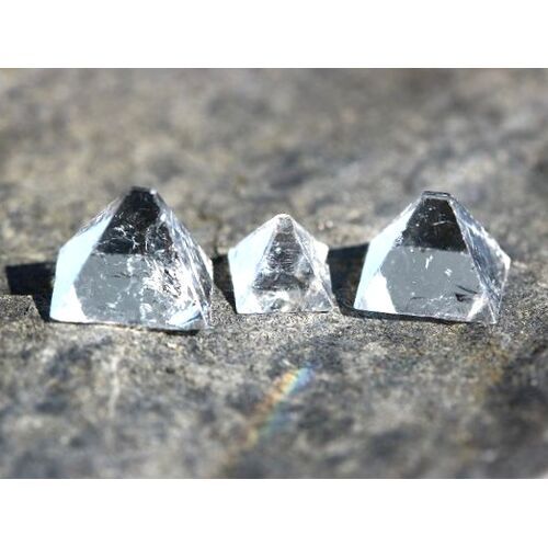 - Form: Naturkristalle mit nach oben zeigende Naturspitzen, Aufstellflächen flach