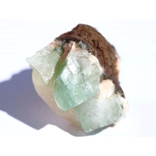 - Besonderheit: Rarität! Natürliche Kristallstufe mit ca. zwei aneinander zusammengewachsene, grüne Apophyllit-Kristalle; größerer Anteil Stilbit! Im entsprechenden Licht und Winkel betrachtet (z. B. Halogenspot oder Sonne) = toller Schimmer!