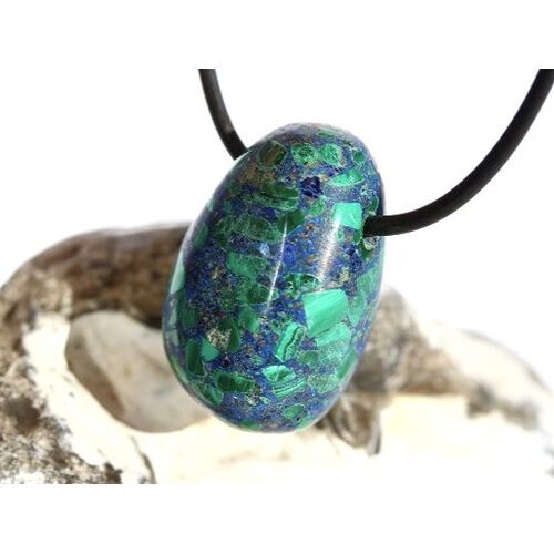 Azurit-Malachit (gepr.) Trommelstein gebohrt: