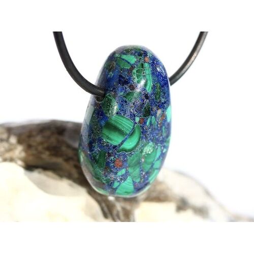 Azurit-Malachit (gepr.) Trommelstein gebohrt: