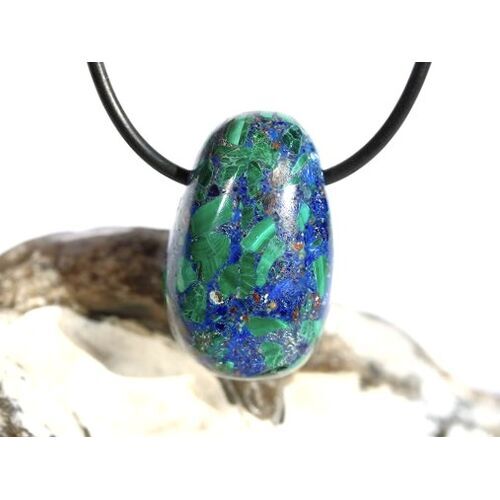 Azurit-Malachit (gepr.) Trommelstein gebohrt - ca. 2,9 cm x 1,8 cm x 1,7 cm