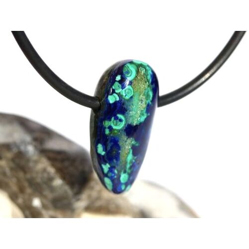 Azurit-Malachit natur Schmuckstein / Scheibenstein gebohrt - Handarbeit - Rarität - Sonderqualität - ca. 2,1 cm x 1 cm x 0,7 cm
