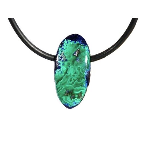 - Besonderheit: Sonderqualität - Rarität - Handarbeit! Wunderschöner, farblich intensiver, gebohrter Azurit-Malachit-Schmuckstein / Scheibenstein, welcher in feiner Handarbeit gefertigt wurde: Geometrisch, flach, ein Unikat! NATUR-Azurit-Malachit! Interessante Farbstruktur - beidseitig tragbar!