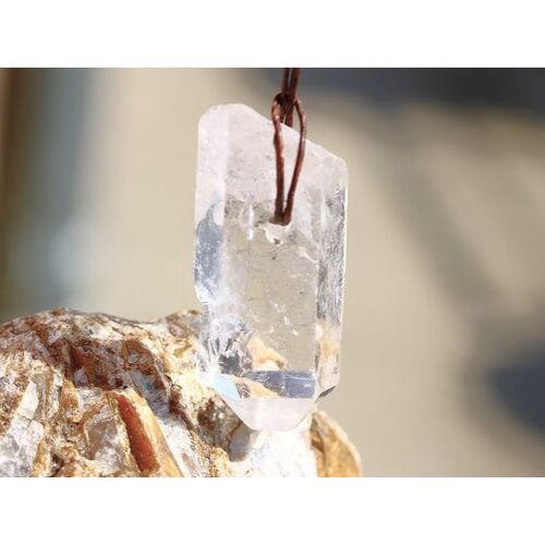 - Besonderheiten: Sonderqualität! XXL-großer bzw. -langer Naturkristallstab mit nach unten zeigenden Naturspitze! Der Kristall ist kristallin hauptsächlich klar mit einer tollen Blicktiefe! Der größere Sonderbohrdurchmesser gibt Möglichkeiten, den Kristall z. B. auch an einem dickeren Band tragen zu können! Der Kristall kann mit einer Querbohrung getragen werden; hier ist die Auflage dann vertikal-mittig auf einer Seitenkante - die Bohrung kann aus unserer Sicht besser als Frontbohrung genutzt werden; hier ergeben sich dann große und flache Auflageflächen der Naturkristallaußenflächen. Der Kristall ist beidseitig tragbar!