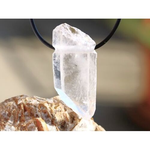 - Besonderheiten: Sonderqualität! XXL-großer bzw. -langer Naturkristallstab mit nach unten zeigenden Naturspitze! Der Kristall ist kristallin hauptsächlich klar mit einer tollen Blicktiefe! Der größere Sonderbohrdurchmesser gibt Möglichkeiten, den Kristall z. B. auch an einem dickeren Band tragen zu können! Der Kristall ist beidseitig tragbar: Vorder- und Rückseite mit großen, flachen Auflageflächen!