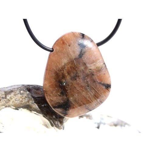 XL Chiastolith (Andalusit / Kreuzstein) Schmuckstein / Scheibenstein gebohrt: