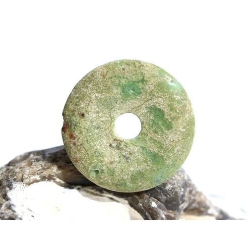 - Besonderheit: Sortenrarität! Dieser Donut zeigt sich in einer interessanten Farbstruktur aus verschiedenen Grün-Nuancen mit etwas braun! Große, flache Auflagen - beidseitig tragbar! Zur Steinauflage bzw. als Auflagestein geeignet!