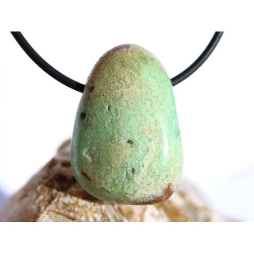 Chrysopras Trommelstein gebohrt: