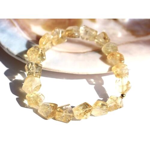 - Besonderheit: Sonderqualität! Edle, geometrische und flache, facettierte Citrin-Schmucksteine wurde hier auf dieses Band aufgezogen. Sie zeigen eine tolle, warme Farbgebung und sind kristallin zumeist klar/er, auch mit Blicktiefe! Die goldenfarbene Perle deckt den Knoten ab und wirkt durch diese goldene Ausführung wunderbar harmonisch zu der Citrin-Farbe! Dieses Citrin-Armband ist ein Einzelstück bzw. Unikat, ein Eyecatcher!