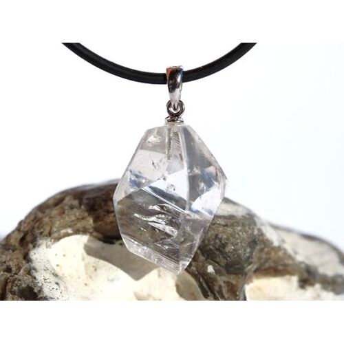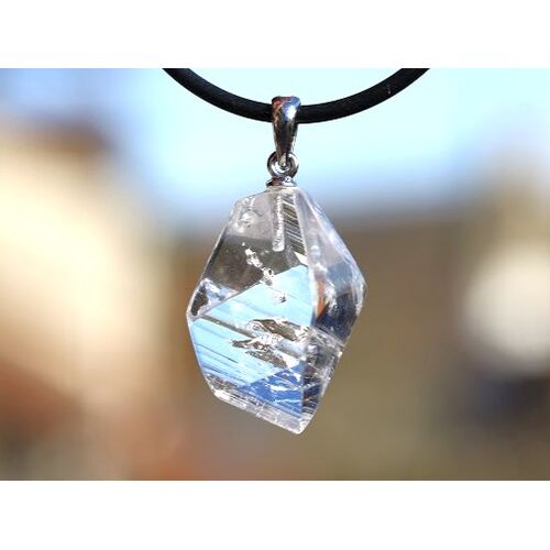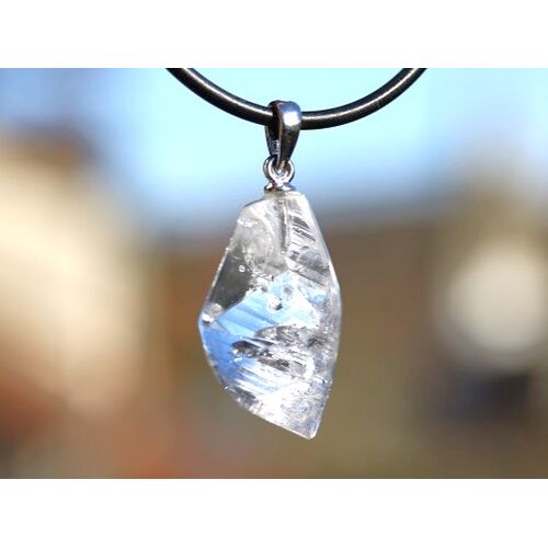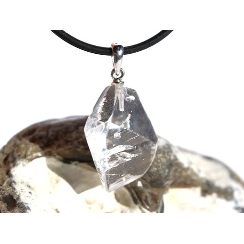 - Besonderheit: AA-Sonderqualität - Rarität! Wunderschöner Kristall mit nach unten zeigende Spitze: einige Flächen flach geschliffen (facettiert) und einige Flächen natürliche Außenflächen mit natürlicher, interessanter Struktur - natürlich flache Kristallaußenfläche als Auflage! Dieser Danburit ist kristallin hauptsächlich KLAR mit einer tolle Blicktiefe und zeigt nur ein paar wenige und interessante Wachstumsstrukturen. Im entsprechenden Licht und Winkel betrachtet (z. B. Halogenspot) = feiner und edler Schimmer im Kristall! 925iger Silberöse!