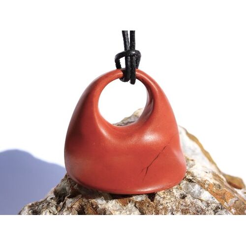 XXL Jaspis rot - Schmuckstein gebohrt mit Lederband - Sonderqualität -: