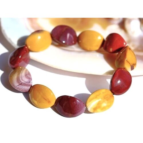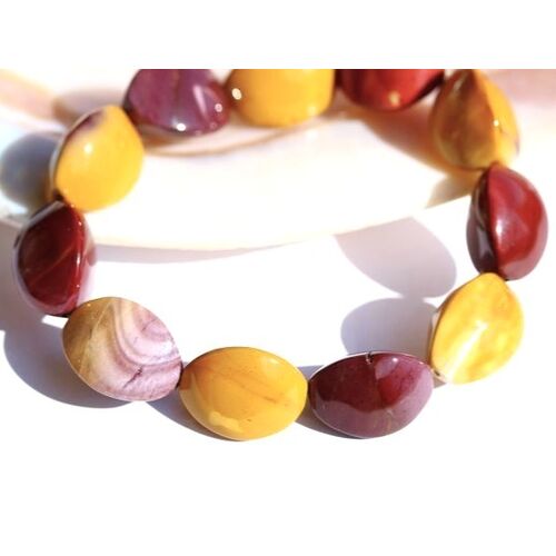 - Besonderheit: Sonderqualität - aus hochwertiger Steinqualität geschliffen! Wunderschöne, bunte Zusammenstellung von verschiedenfarbigen und geschliffenen Mookait-Schmucksteinen in Olivenform, welche auf ein Gummiband aufgezogen wurden!