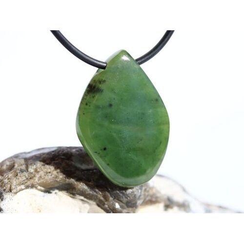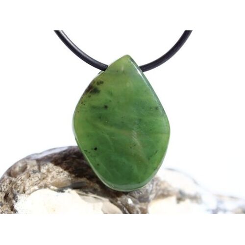 Nephrit-Jade Schmuckstein / Scheibenstein gebohrt - Sonderqualität - Handarbeit - ca. 3,3 cm x 2,4 cm x 0,6 cm