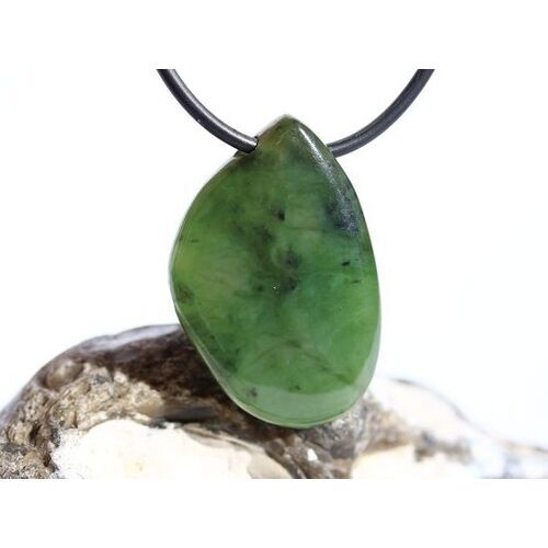 Nephrit-Jade Schmuckstein / Scheibenstein gebohrt - Sonderqualität - Handarbeit - ca. 3,4 cm x 2,2 cm x 0,7 cm