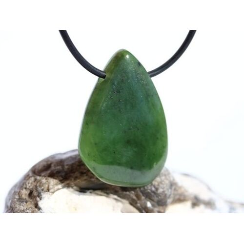 Nephrit-Jade Schmuckstein / Scheibenstein gebohrt - Sonderqualität - Handarbeit - ca. 3,4 cm x 2,4 cm x 0,7 cm