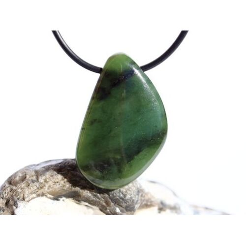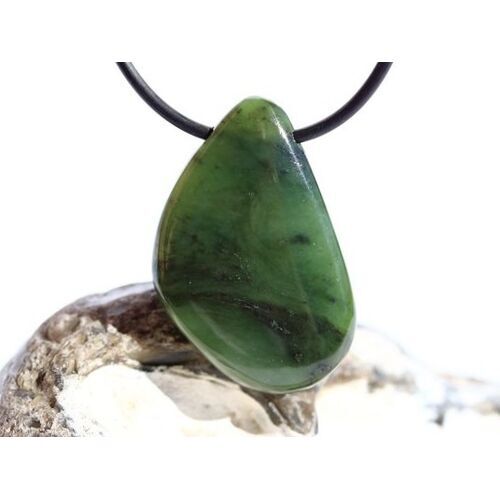 Nephrit-Jade XL Schmuckstein / Scheibenstein gebohrt - Sonderqualität - Handarbeit - ca. 3,6 cm x 2,5 cm x 0,7 cm