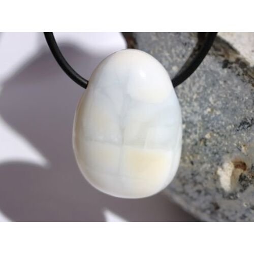 Opal weiß (Milchopal) Trommelstein gebohrt - Sonderqualität -: