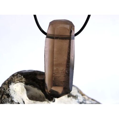 - Besonderheiten: Rarität - AA-Sonderqualität! Herstellung z. T. in Handarbeit in Deutschland vom Edelsteinschleifer! XXXL-großer Kristallstab / Rohstein mit nach unten zeigende Spitze (Dow-Schliff) - natürlich flache und flach-geschliffene (polierte) Auflage - beidseitig tragbar - Sonderbohrdurchmesser! Wunderschöne, dunklere Farbe - im entsprechenden Gegenlicht (z. B. Halogenspot) und bei direkter Betrachtung ebenso sichtbar = kristallin innerlich KLAR mit Blicktiefe! Vom Edelsteinschleifer wurde in feiner Handarbeit die obere Seitenfläche (Ende) matt-flach-abgerundet geschliffen - die Längsflächen sind abwechselnd mal flach geschliffen und poliert worden bzw. natürlich belassen worden! Da der Kristall beidseitig tragbar ist, kann hier mal die flach-geschliffen-polierte Vorderseite mit Blicktiefe nach vorne oder die natürliche Kristalloberfläche nach vorne getragen werden! Ein Traumkristall!