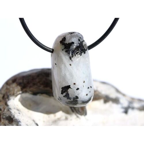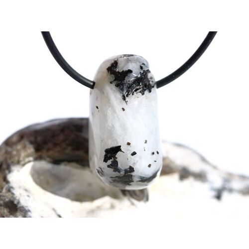 Regenbogenmondstein "Schimmer" Trommelstein gebohrt (Labradorit weiß) - Sonderqualität - ca. 3,2 cm x 1,6 cm x 1,6 cm