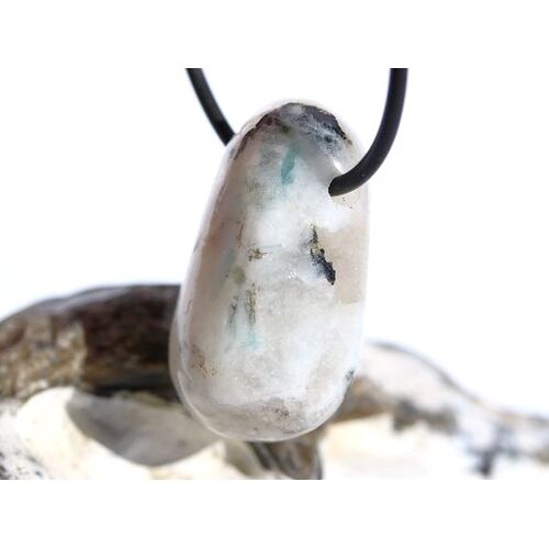 Regenbogenmondstein Trommelstein gebohrt (Labradorit weiß, Feldspat) - Sonderqualität -: