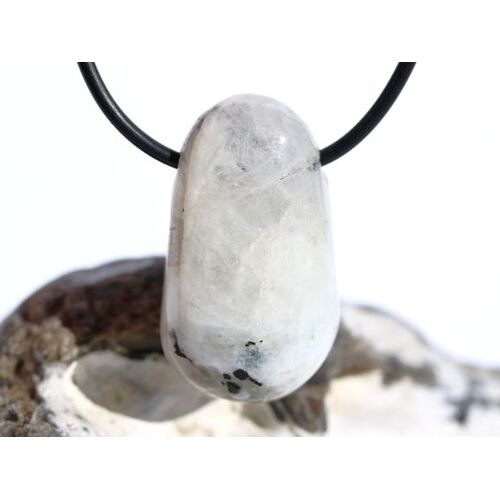 Regenbogenmondstein "Schimmer" Trommelstein gebohrt (Labradorit weiß) - Sonderqualität - ca. 3,3 cm x 1,9 cm x 1,6 cm