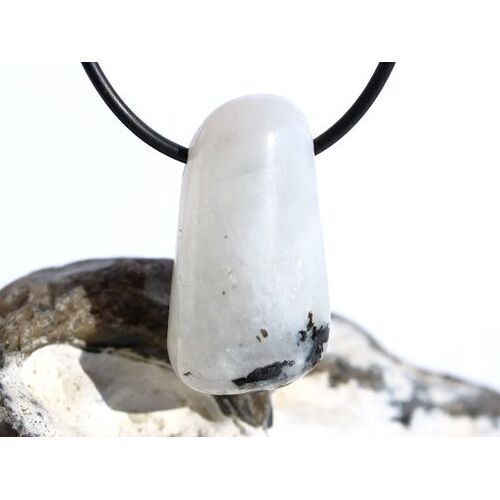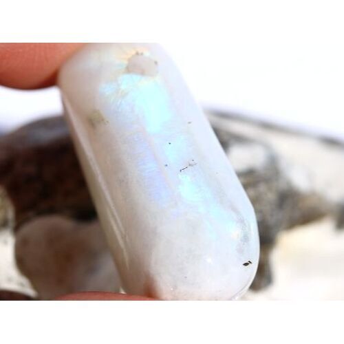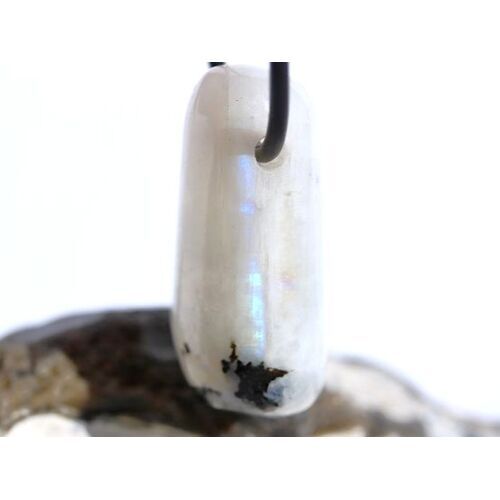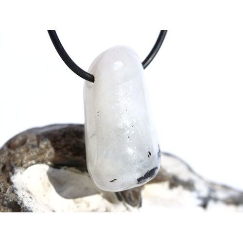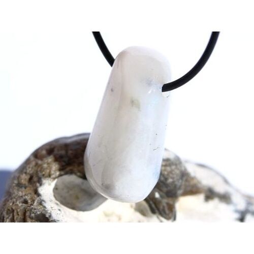 Regenbogenmondstein "Schimmer" XL Trommelstein gebohrt (Labradorit weiß) - Sonderqualität - ca. 3,5 cm x 1,9 cm x 1,5 cm