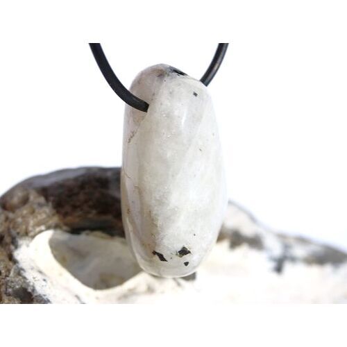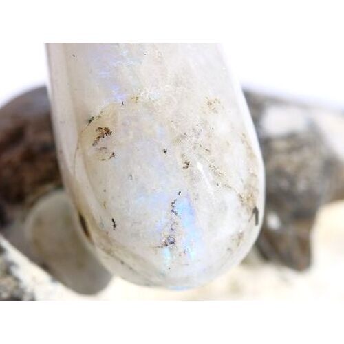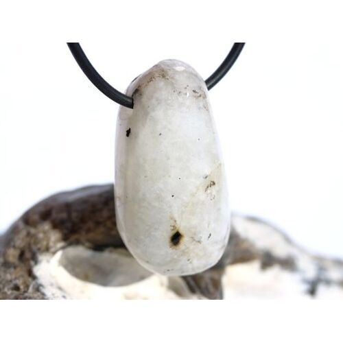 Regenbogenmondstein "Schimmer" XL Trommelstein gebohrt (Labradorit weiß) - Sonderqualität - ca. 3,6 cm x 1,9 cm x 1,7 cm