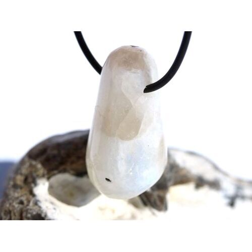 Regenbogenmondstein "Schimmer" XL Trommelstein gebohrt (Labradorit weiß) - Sonderqualität - ca. 3,6 cm x 2 cm x 1,9 cm