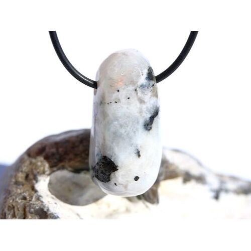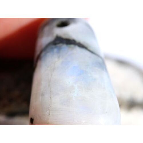 Regenbogenmondstein "Schimmer" XL Trommelstein gebohrt (Labradorit weiß) - Sonderqualität - ca. 3,7 cm x 1,7 cm x 1,9 cm