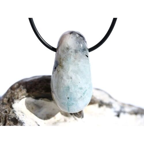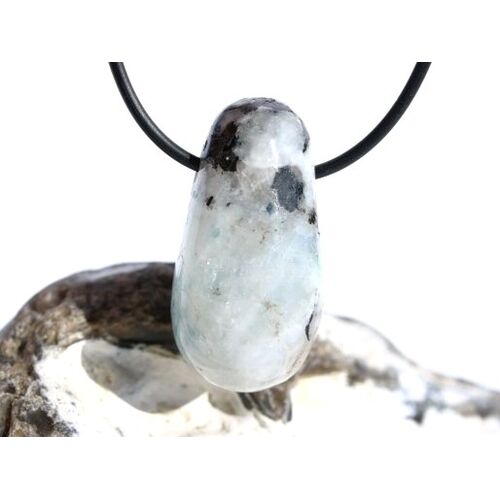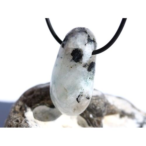 Regenbogenmondstein "Schimmer" XL Trommelstein gebohrt (Labradorit weiß) - Sonderqualität - ca. 3,7 cm x 1,9 cm x 1,7 cm