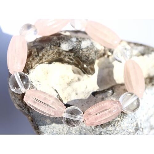 Rosenquarz-Bergkristall Armband Kugeln + Navetten - Sonderqualität -: