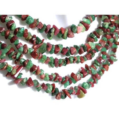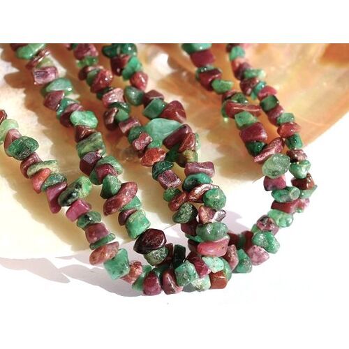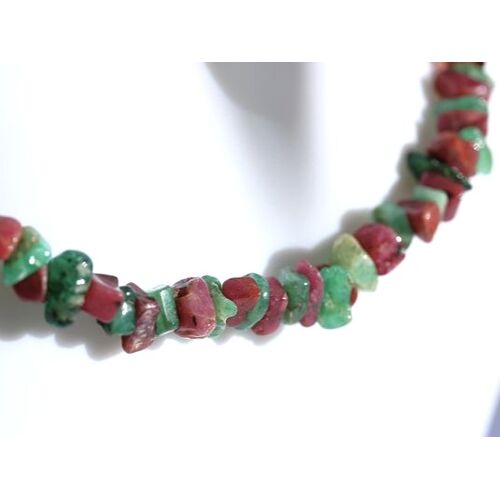 - Besonderheit: Sonderqualität! Wunderschöne Splitterkette in einer farblich sehr schönen Qualität! Abwechselnd wurden angetrommelte Rubin- und Smaragd-Splitter aufgefädelt - ein Eyecatcher! Im entsprechenden Gegenlicht betrachtet (z. B. Halogenspot) zeigt sich die zumeist durchscheinende Qualität!