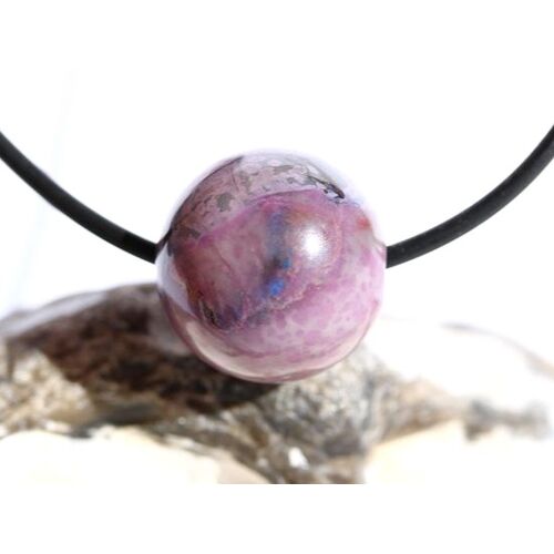 - Besonderheit: RARITÄT - Sonderqualität! Gebohrte Kugel mit einer sehr schönen Farbgebung - interessante Farbstruktur durch die Mehrfarbigkeit und pinkfarbene Pünktchen sowie durch zwei winzige, blaue Pünktchen (Richterit) - großer Sonderbohrdurchmesser!
