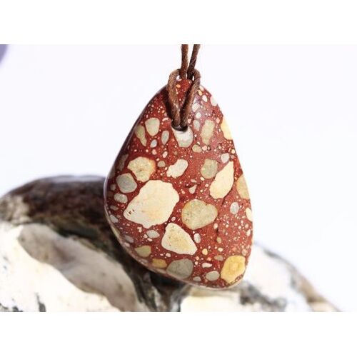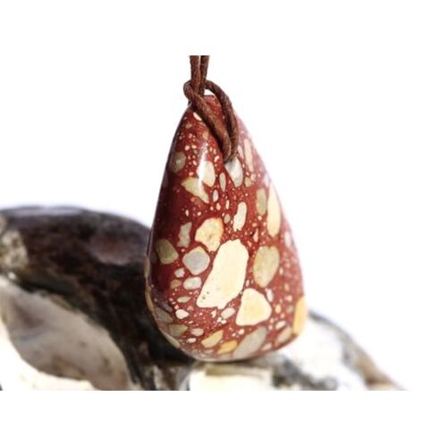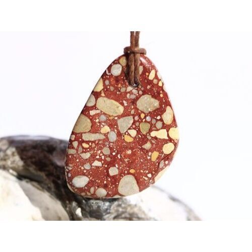 Trümmer-Jaspis (Konglomerat) Trommelstein gebohrt - Sonderqualität - Rarität -: