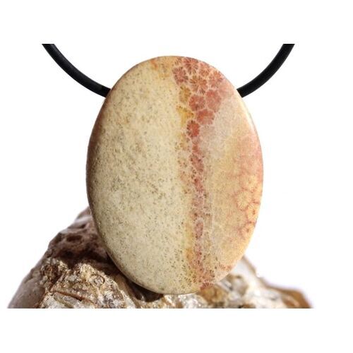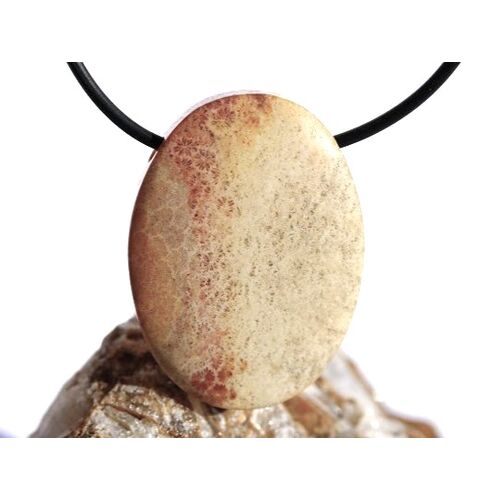 XXL Versteinerte Koralle - Schmuckstein Cabochon / Scheibenstein gebohrt: