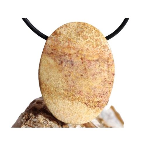 XXL Versteinerte Koralle - Schmuckstein Cabochon / Scheibenstein gebohrt: