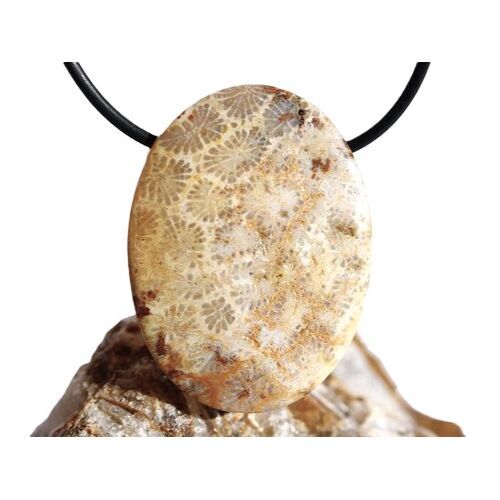 XXL Versteinerte Koralle - Schmuckstein Cabochon / Scheibenstein gebohrt: