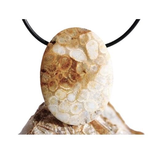 XXL Versteinerte Koralle - Schmuckstein Cabochon / Scheibenstein gebohrt: